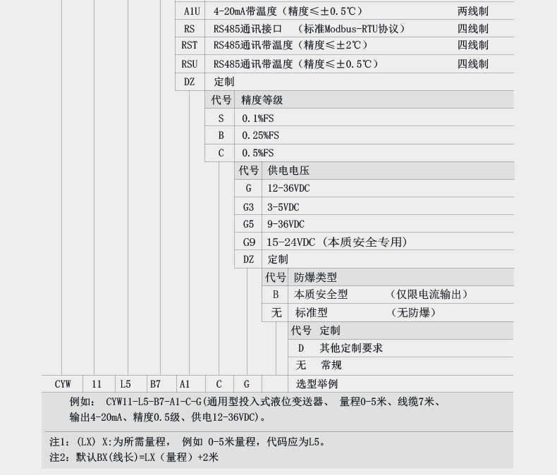 星仪CYW11液位变送器投入式液位计液位传感器水位计