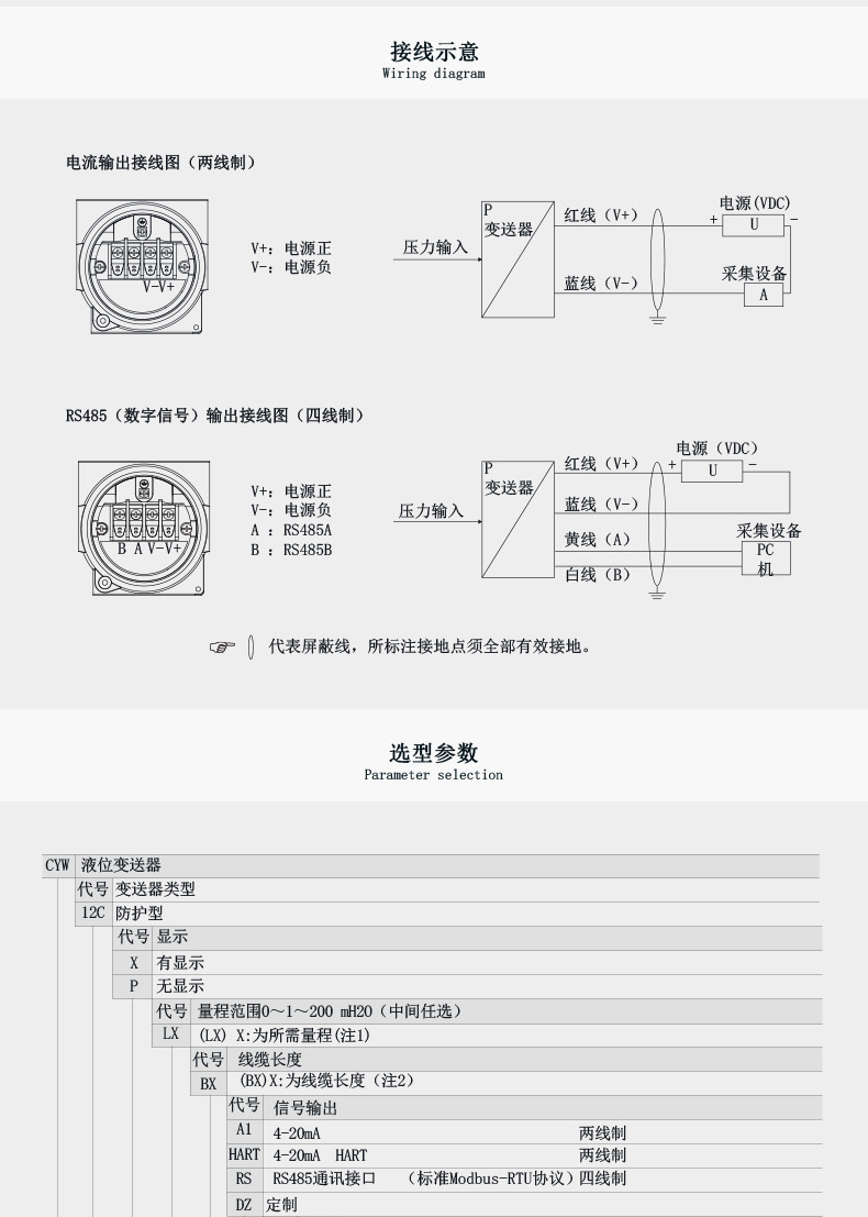 星仪CYW12C防护型液位变送器防潮防爆投入式水位传感器